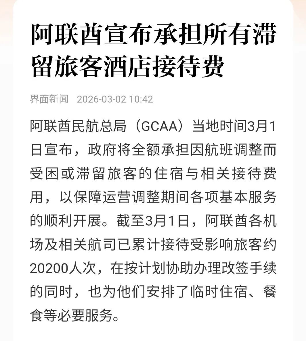 因此,冲突发生后,阿联酋第一时间宣布承担所有滞留旅客酒店接待费,就是挽回声誉的体现。