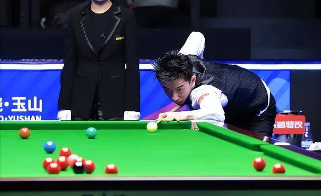 吴宜泽先上手,但打绿球时母球摔袋,被罚了4分,给了宾汉姆机会。